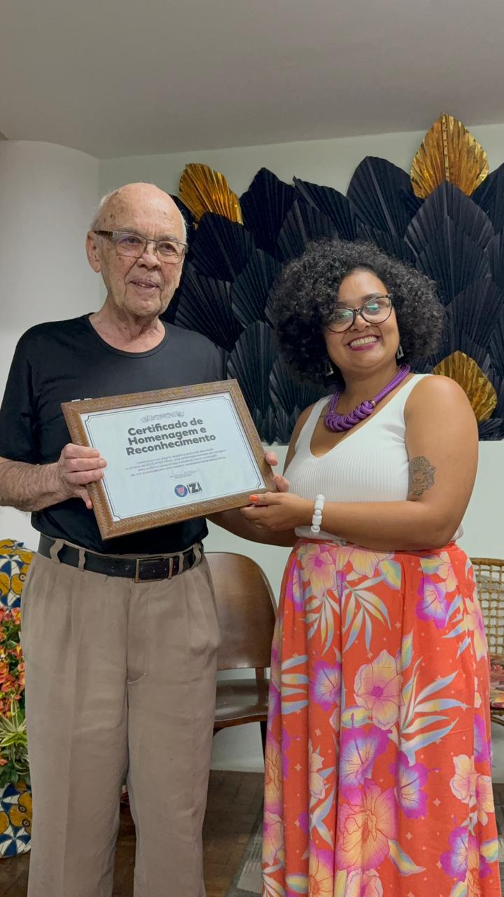 A solenidade contou ainda com um momento especial: a vereadora de Belo Horizonte Iza Lourença entregou à Educafro um certificado de reconhecimento pelos 25 anos de atuação da Rede, destacando a importância histórica da educação popular no município. O documento foi recebido por Frei Luciano Brod, OFM, figura fundamental para a implantação e consolidação do projeto na Província Santa Cruz.