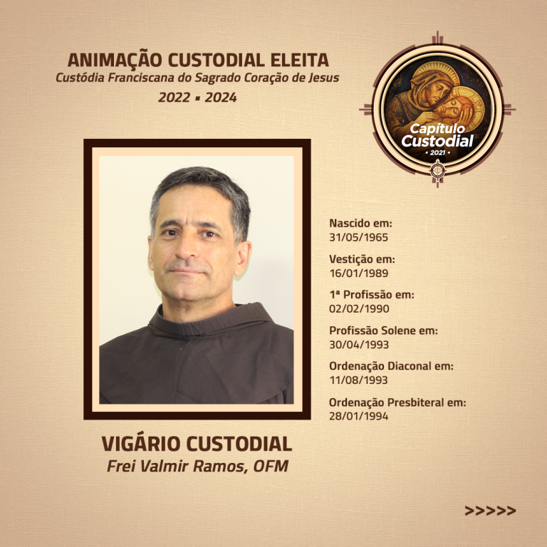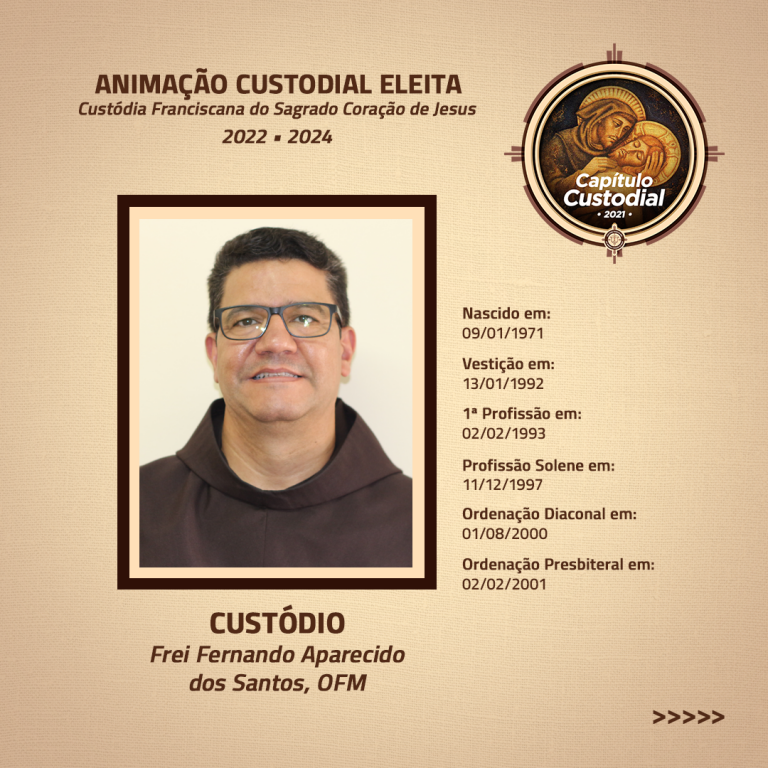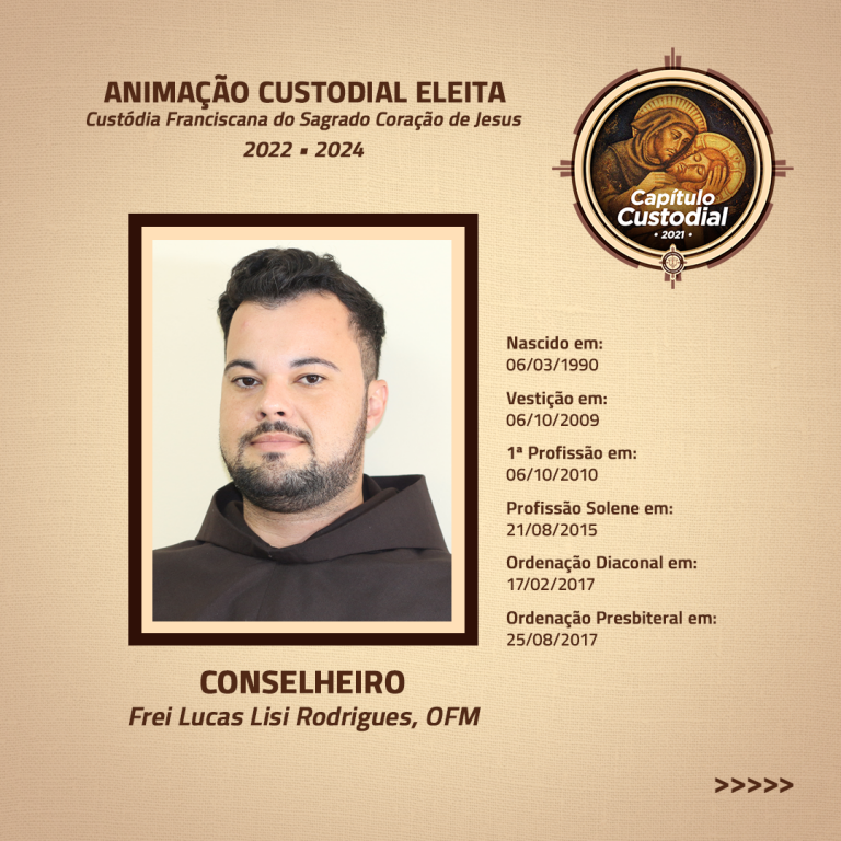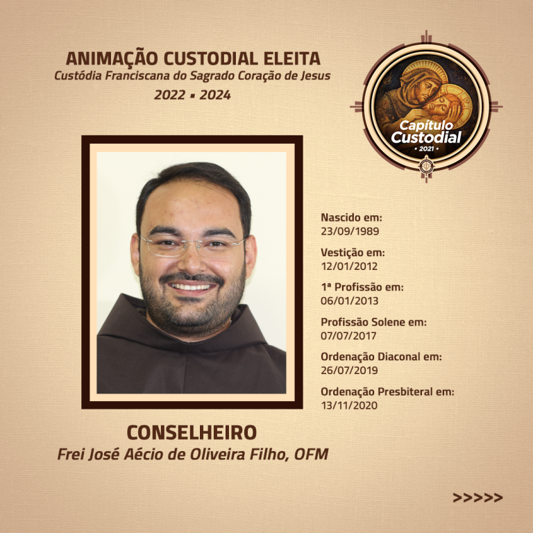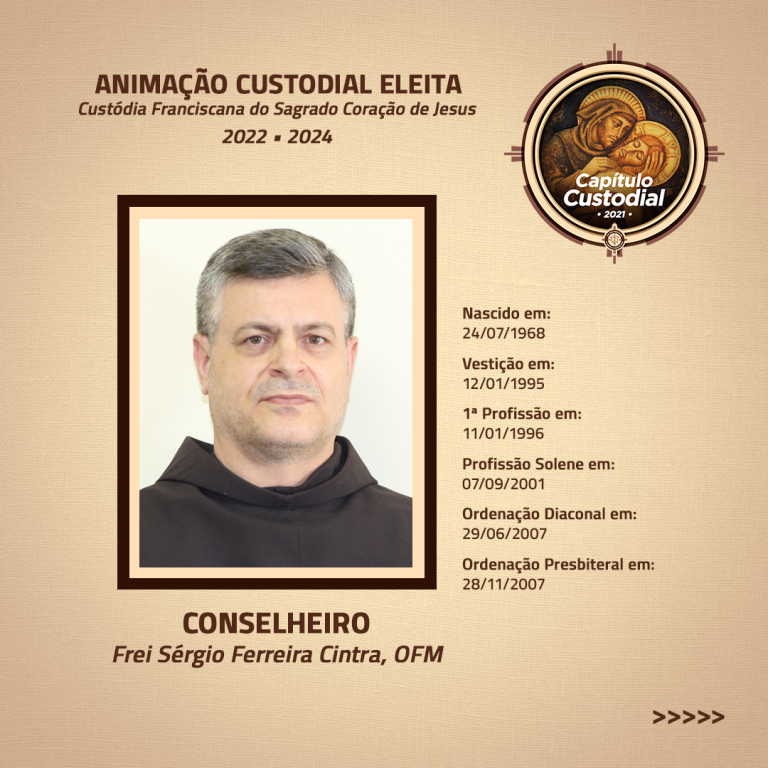 Após a eleição do Custódio e do Vigário Custodial, também foram eleitos os quatro conselheiros, sendo escolhidos os seguintes frades: Frei José Aécio de Oliveira Filho, OFM, Frei Sérgio Ferreira Cintra, OFM, Frei Lucas Lisi Rodrigues, OFM e Frei Valdemir Nelo Rufino, OFM.