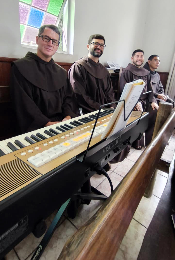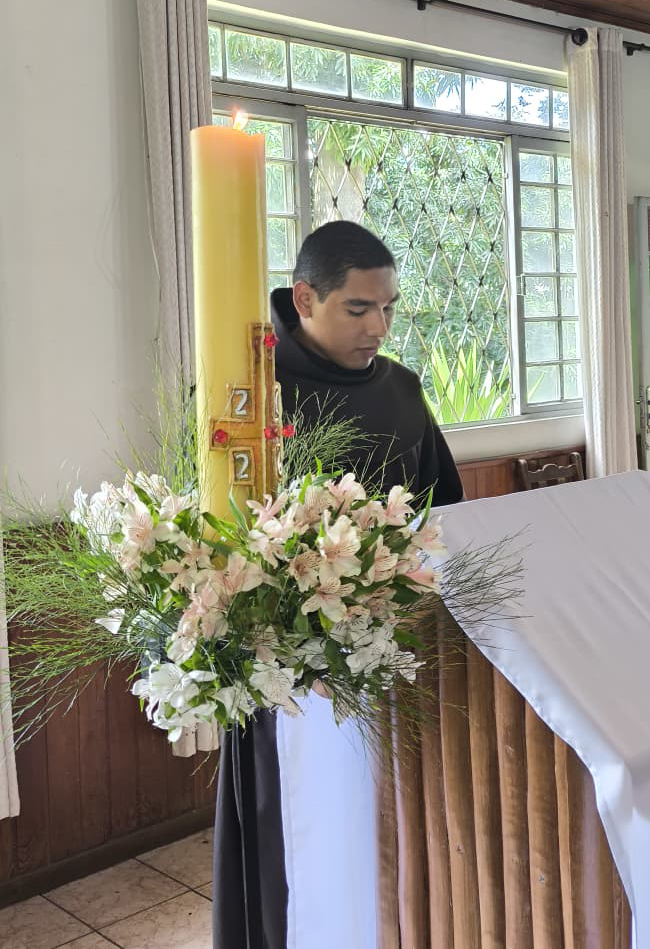 Betim (MG) – O domingo da Ressurreição amanheceu com um sol tímido, mas forte, sobre o Convento Santa Maria dos Anjos. Nas escadarias de acesso à fraternidade, um coro de vozes esperava ansiosos. Não eram vozes ensaiadas para o perfeccionismo, mas vozes de irmãos que cantavam com o coração aberto: “Bem-vindo, bem-vindo, só estava faltando você aqui, seja bem-vindo!” E depois, uma invocação a Francisco: “Pai Francisco, vem ensinar teus filhos o Cristo imitar… Francisco, irmão da natureza, amigo do Senhor, grita aos homens surdos o respeito pela paz.”