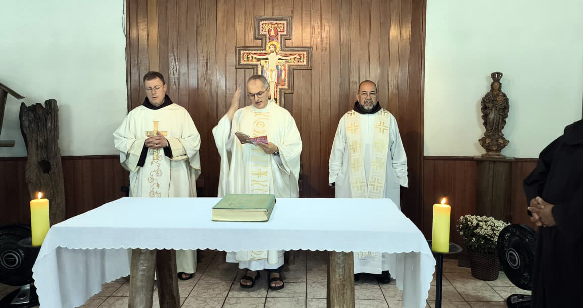 Ministro Geral dos Frades Menores é acolhido ao som de cânticos franciscanos no Convento Santa Maria dos Anjos; em homilia emocionada, afirma que “a formação não é preparação para a missão, mas é a própria missão”