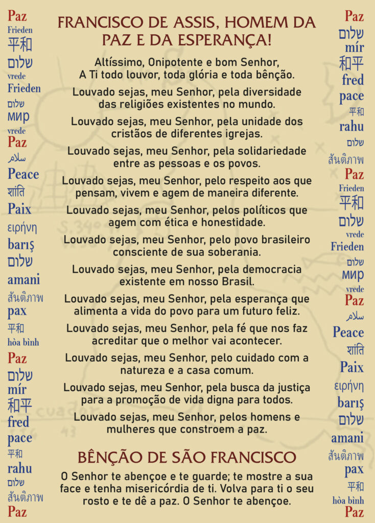 Um momento de encontro com diversas lideranças religiosas que unidas pelo Espírito de Assis, congrega várias crenças para a vivência da construção de uma sociedade nova pautada na justiça, solidariedade e paz.