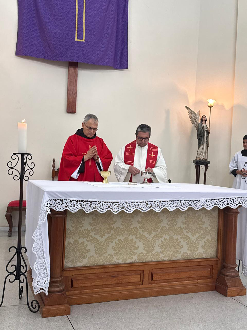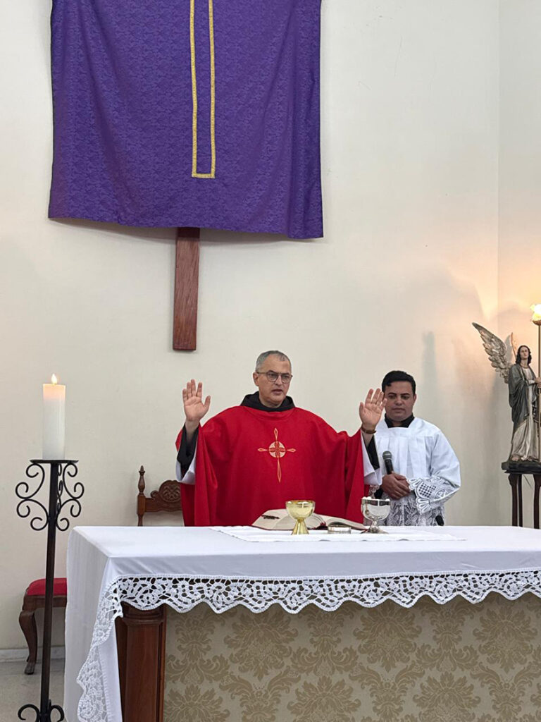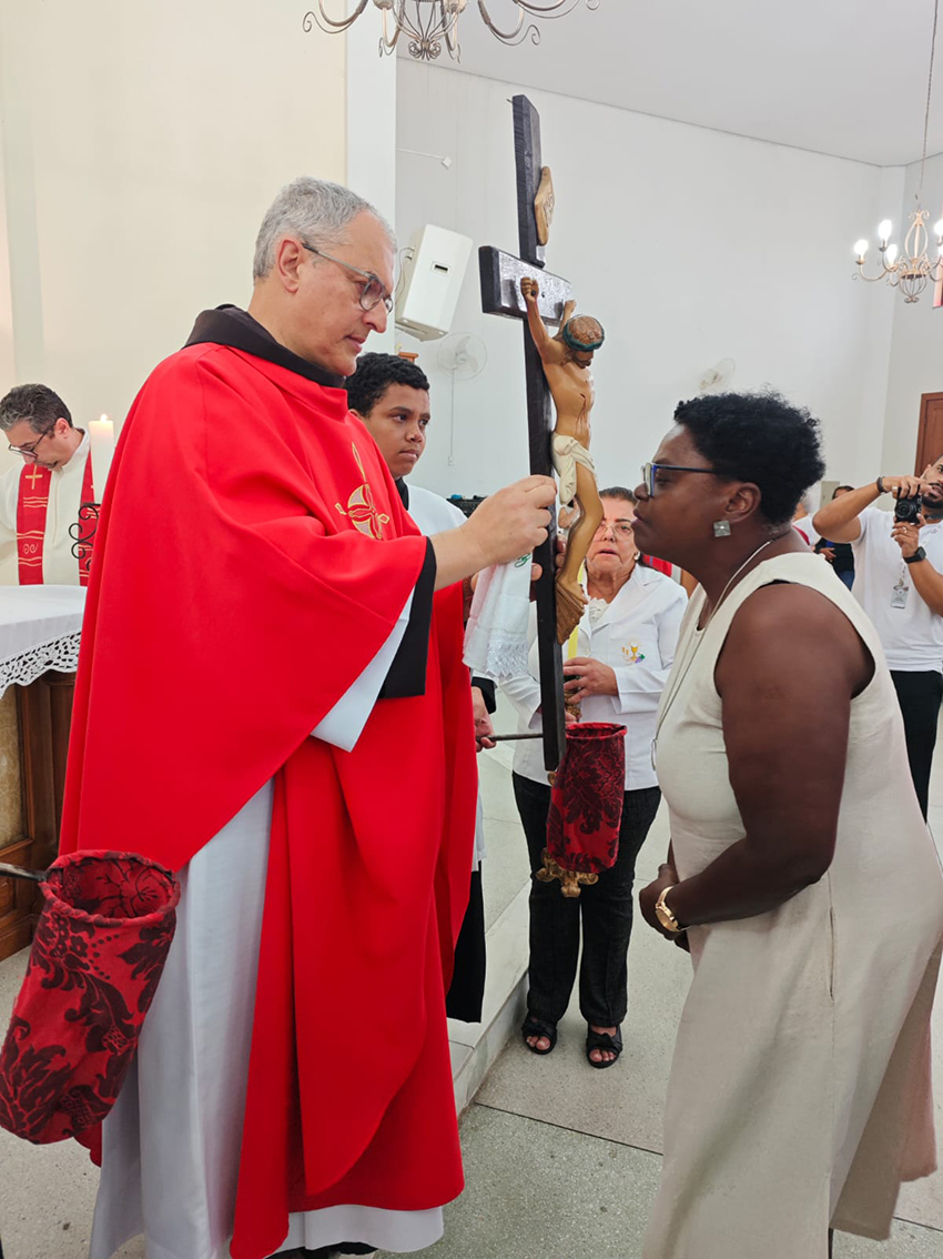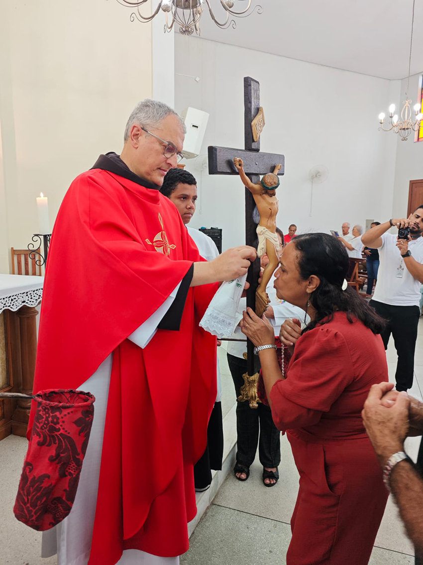 Assim, entre irmãos e irmãs reunidos pela e na fé, encerrou-se mais um dia da visita de Frei Massimo Fusarelli à Província Santa Cruz. O Ministro Geral partiu da comunidade do Senhor Bonfim com a alma marcada pela cruz – não a cruz de madeira polida, mas a cruz de carne e osso que sangra nas guerras, nas ruas, nos lares desfeitos, nos corações que perderam a esperança. Mas também partiu com a certeza que São Francisco já havia descoberto: é diante do Crucificado que se aprende a amar. E é curvando-se diante do irmão que se faz presente o Reino.