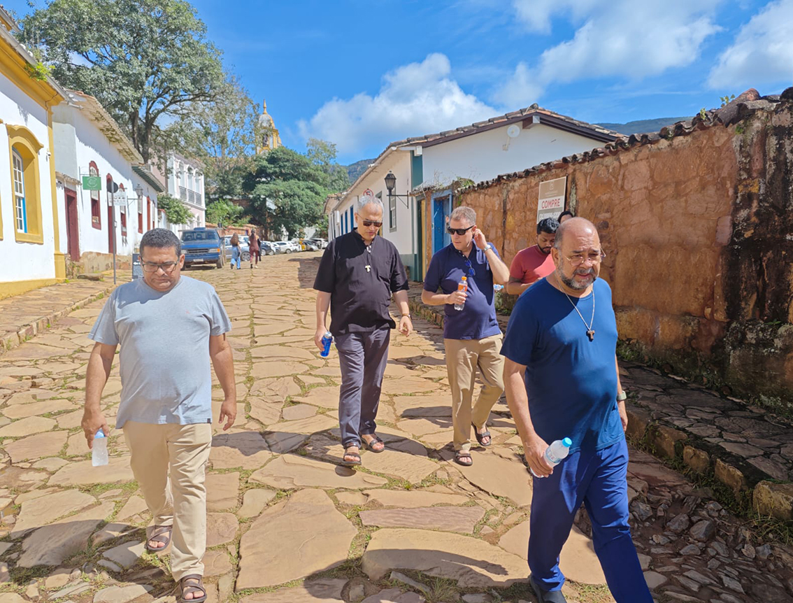 Em seguida, o Ministro Geral deslocou-se para a cidade de Tiradentes – joia do barroco mineiro. Mais do que um passeio turístico, foi uma imersão na alma das Minas Gerais. Frei Massimo teve a oportunidade de conhecer um pouco da história da região, do sotaque eleito o mais charmoso do Brasil[2] (grifo nosso) que embala as conversas, dos dialetos que ganham vida em expressões como “uai”, “trem”, “coisa”, “mininu”. Encantou-se com o artesanato local e, sobretudo, com a proximidade com a natureza que envolve a cidade entre montes. Quem acompanhou o percurso conta que o Ministro Geral