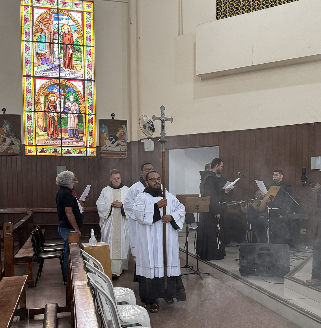 Foi então que o Ministro Geral fez uma pausa e, olhando para a assembleia, chamou cada um pelo nome – não todos, mas alguns, como se estivesse reconstituindo o gesto do Mestre: “Não é Maria que encontra Jesus, é Jesus que a chama pelo nome. Maria… Massimo… José… Vicente… Isael… Karolayne…” Os frades acompanhavam em silencio orante. Cada frade, cada irmã presente, cada leigo sentiu-se interpelado. O Ressuscitado, ali, naquela manhã, chamava cada um pelo nome.