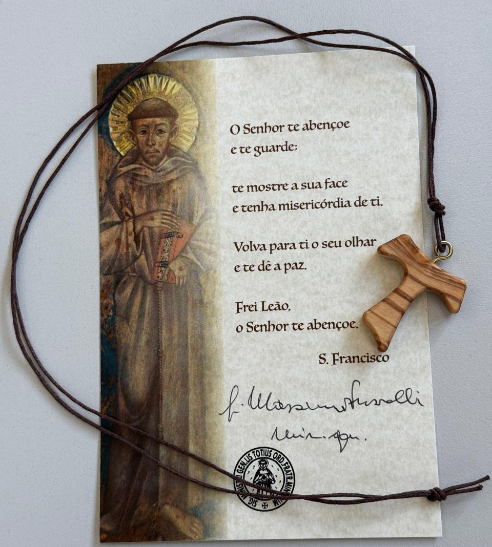 A missa prosseguiu, e no final, Frei Massimo entregou a cada frade um Tau e a Bênção de São Francisco (recordando o bilhete a Frei Leão[2]). Muitos frades se abraçaram. Era a Páscoa que se tornava visível naquela fraternidade concreta, feita de rostos, de nomes chamados um a um.