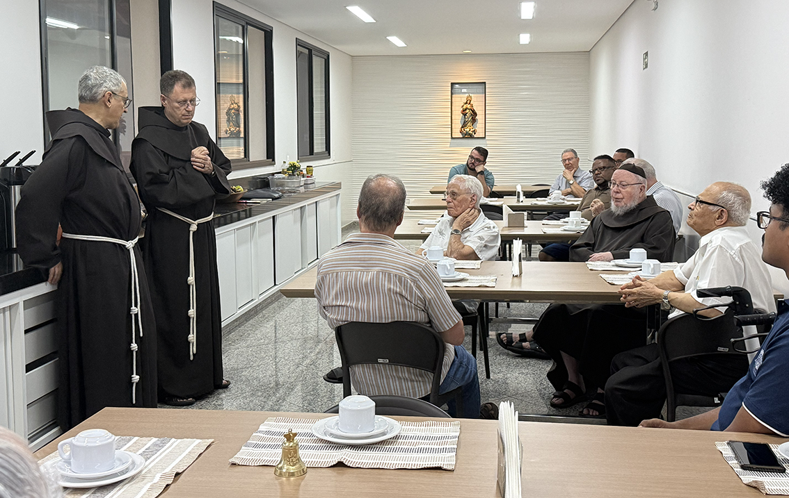 Divinópolis (MG) – O Sábado Santo amanheceu em silêncio. Na Província Santa Cruz, os trabalhos do dia começaram com a antífona que ecoa como um sussurro de esperança: “Cristo por nós padeceu, morreu e foi sepultado: vinde todos, adoremos!” Era o encerramento da visita fraterna do Ministério Geral às fraternidades do Postulantado e Nossa Senhora de Lourdes, em São João del-Rei. Mas a missão não terminava ali. Havia um encontro marcado com a sabedoria dos anos e com a noite mais santa do ano.