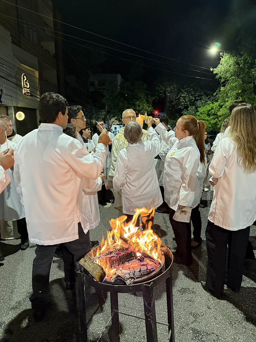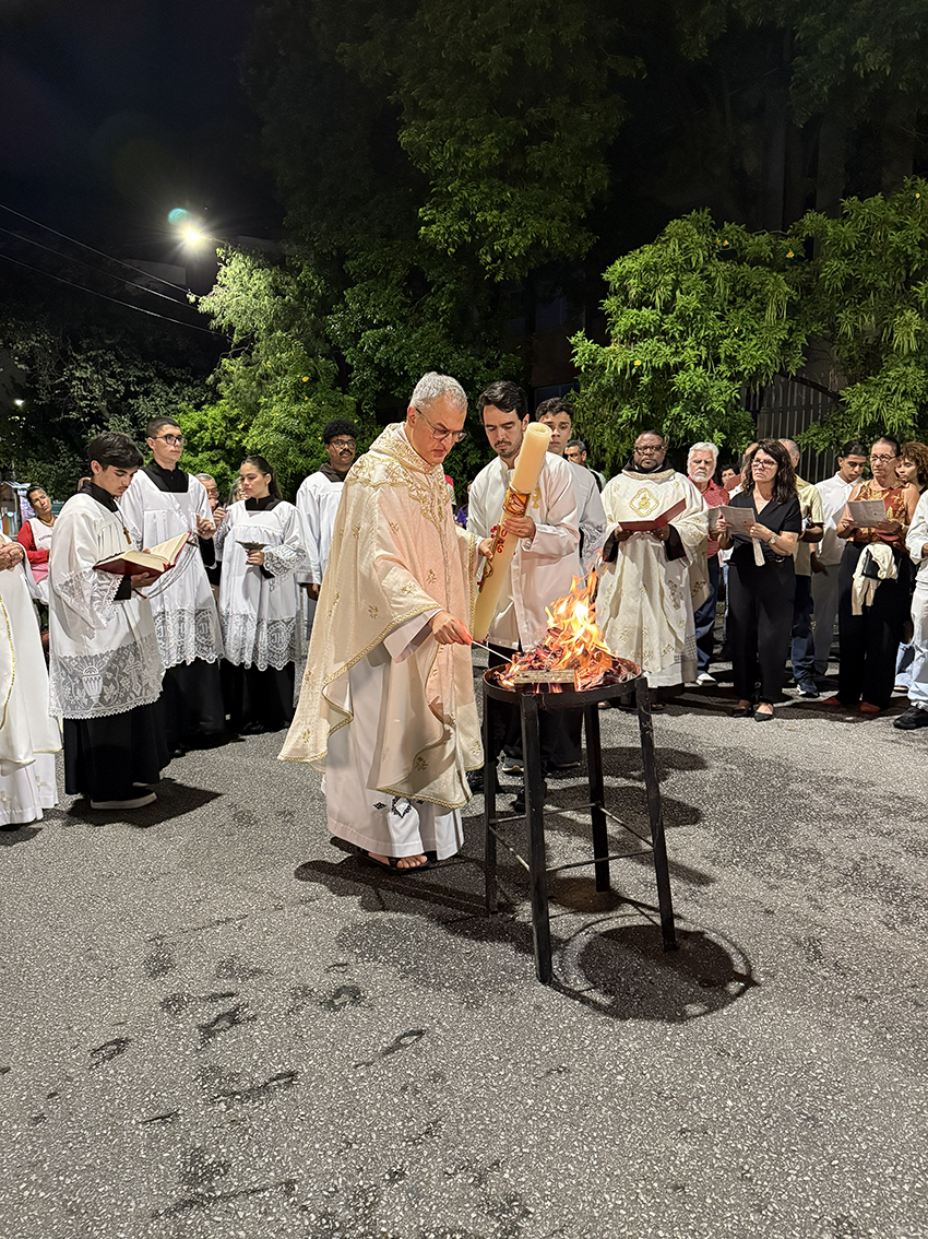 A liturgia prosseguiu na convivência fraterna. Os irmãos da fraternidade e os irmãos de fé se achegaram numa grande confraternização da ressurreição. Houve abraços, sorrisos, partilha. A noite que começara em silêncio terminou em canto. O Rei, que dormia no sepulcro, havia despertado. E com ele, todos os que esperavam.