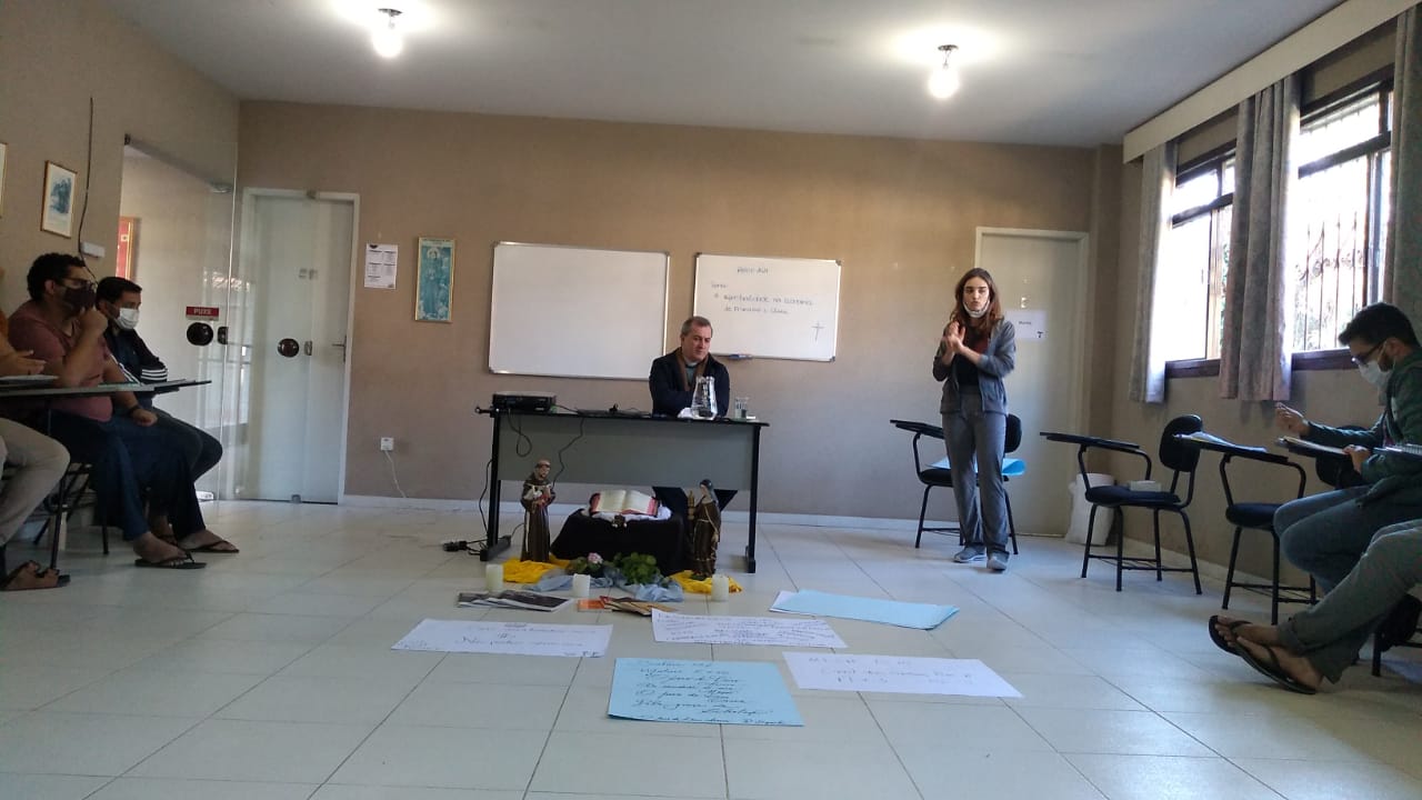 Nas colocações, as reflexões partiram do território no qual estamos inseridos, reconhecendo a economia que está entranhada em nossa sociedade consumista e capitalista. A assessora Marina partilhou sua experiência em Brumadinho – MG quando houve o rompimento da Barragem em 2019, juntamente com toda a mobilização para prestar assistência as vítimas da tragédia. Dom Vicente em uma de suas falas, contextualizou a Economia de Francisco e Clara a partir dos documentos do Papa Francisco Evangelii Gaudium, Laudato Si’ e Fratelli Tutti. Outro momento de fala dos assessores, os frades ouviram a explanação do que foi o Encontro da Economia de Francisco e Clara.