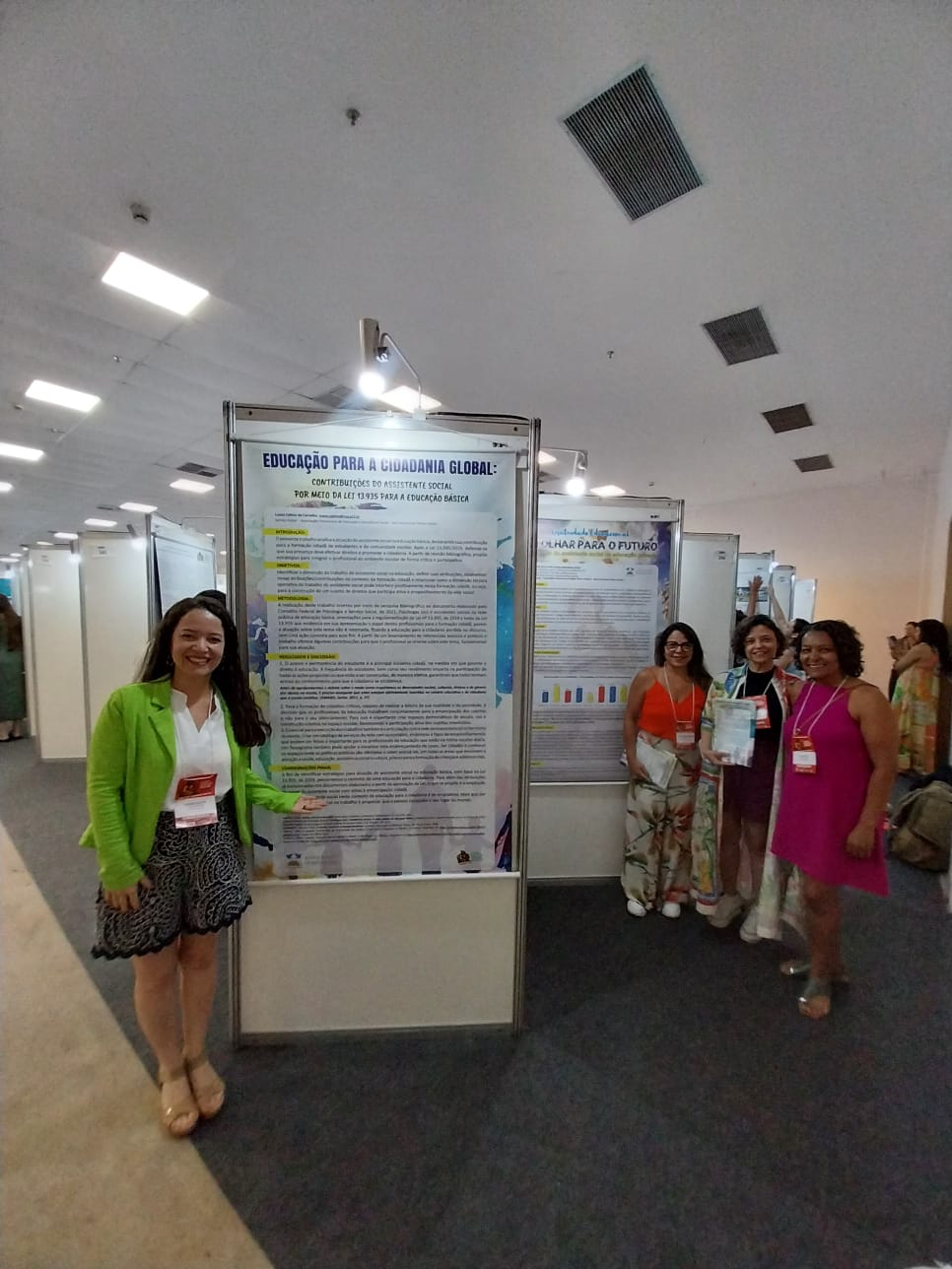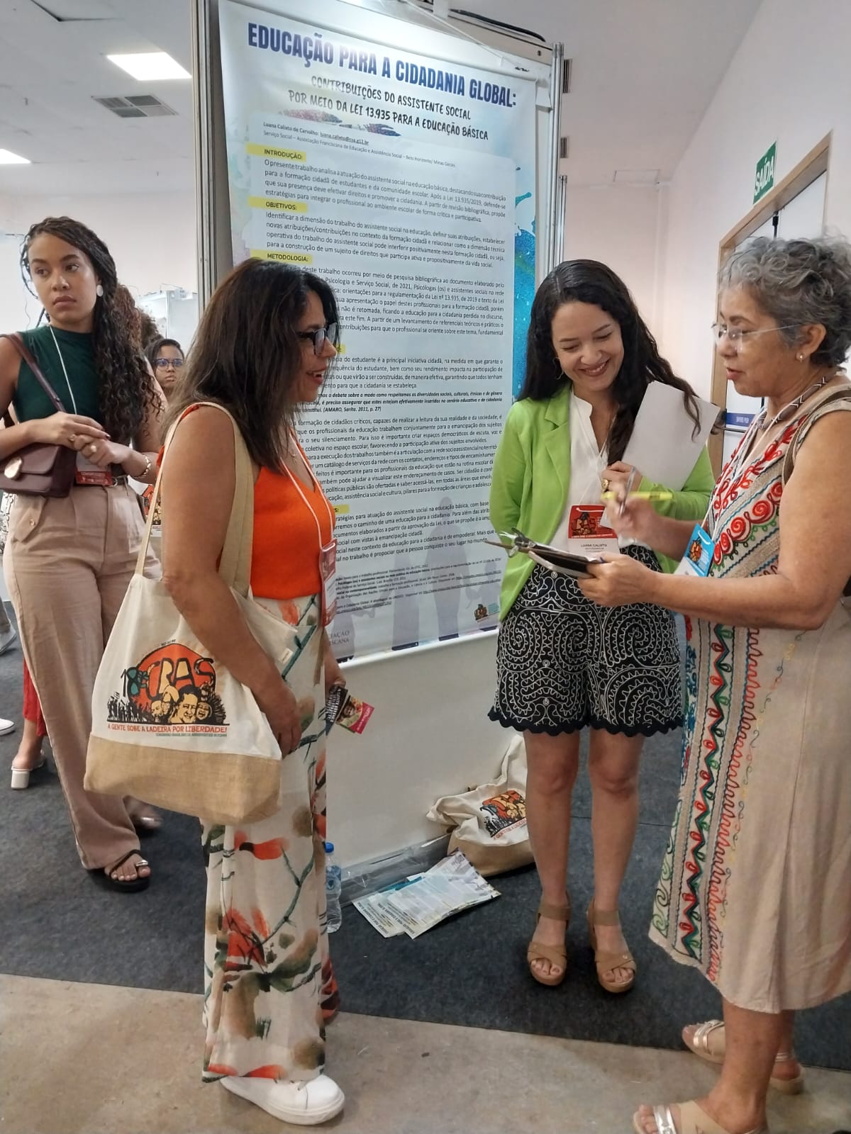 De 09 às 13h a equipe de Serviço Social do CSA apresentou novamente o Pôster GRATUIDADE EDUCACIONAL: um olhar para o futuro, Luana Calixto apresentou o Pôster EDUCAÇÃO PARA A CIDADANIA GLOBAL: contribuições do assistente social por meio da lei 13.935 para a educação básica e Janaína Andrade apresentou o Pôster MEMÓRIA SOCIAL E PERSPECTIVAS: A Comissão de Educação e Serviço Social do CRESS-MG e os caminhos para a consolidação da inserção profissional na educação básica em Minas Gerais.